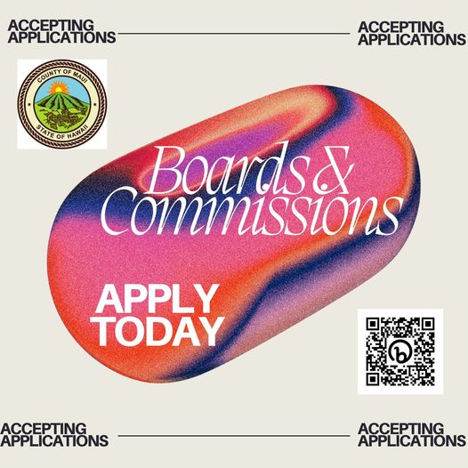 Interested in joining a County Board or Commission? Learn more on how to get involved by visiting bit.ly/MauiCountyBoards. Application deadline is December 15.
